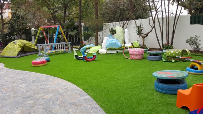 Vì thế, sân chơi ngoài trời được đầu tư thiết kế bài bản sẽ không tạo những rào cản nào, tự thân các bé nảy sinh tình cảm với thiên nhiên, tập thói quen tốt bảo vệ môi trường sống.